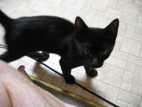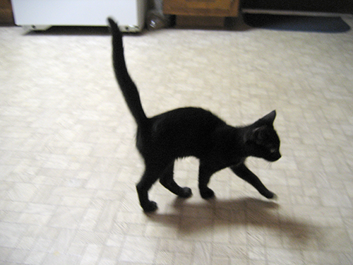 Our bachelors’ pad recently welcomed a fifth member: Kuro Kuro, the black kitty of triumph. But you can call him Kuku for short. Not only is he highly personable, he possesses a very stately appearance with his oversized ears and long legs. Everyone who has met Kuku loves him. In fact, we’ve had to stave off a couple of would-be catnappers. What is the world coming to?